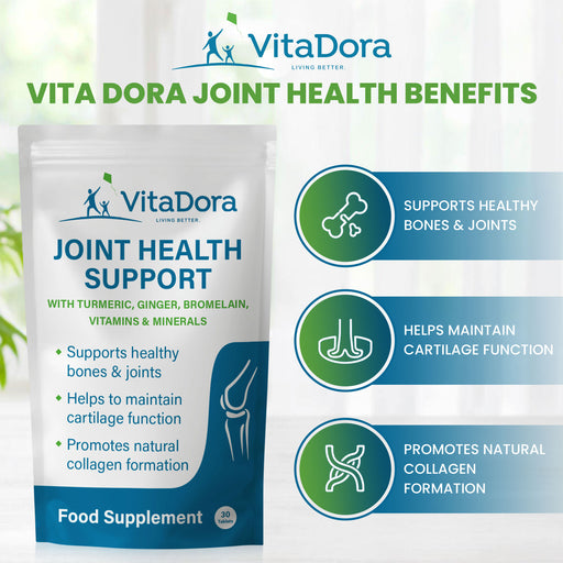 View full detailsWITH TURMERIC, GINGER, BROMELAIN, VITAMINS & MINERALS Give your joints the care they deserve with VitaDora Joint Health Support, a powerful ble...